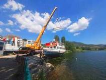 Πιο συγκεκριμένα, έπειτα από πολύ καλά οργανωμένη επιχείρηση, γιγάντιο γερανοφόρο όχημα κατέφθασε στην Καστοριά, στην περιοχή του ΔΗΝΑΚ, όπου πραγματοποιήθηκε ανέλκυση του πλοιαρίου από τη λίμνη και κατόπιν έγινε “επιθεώρηση ξηράς” και άλλοι πολύωροι και λεπτομερείς έλεγχοι σε όλο το μηχανολογικό και λειτουργικό εξοπλισμό του.