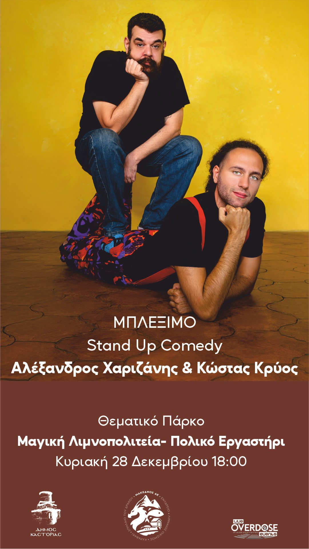 Οι Αλέξανδρος Χαριζάνης και Κώστας Κρύος ανεβαίνουν μαζί στη σκηνή με την stand up comedy παράσταση «Μπλέξιμο» και υπόσχονται να… τα μπλέξουν όλα με τον πιο αστείο τρόπο!