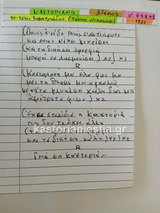 Ευχαριστούμε θερμά τον κ. Πάνο Κούλη που επέλεξε την kastorianiestia.gr για την παραχώρηση των στοιχείων αυτού του μοναδικού τεκμηρίου της μουσικής μας ιστορίας.