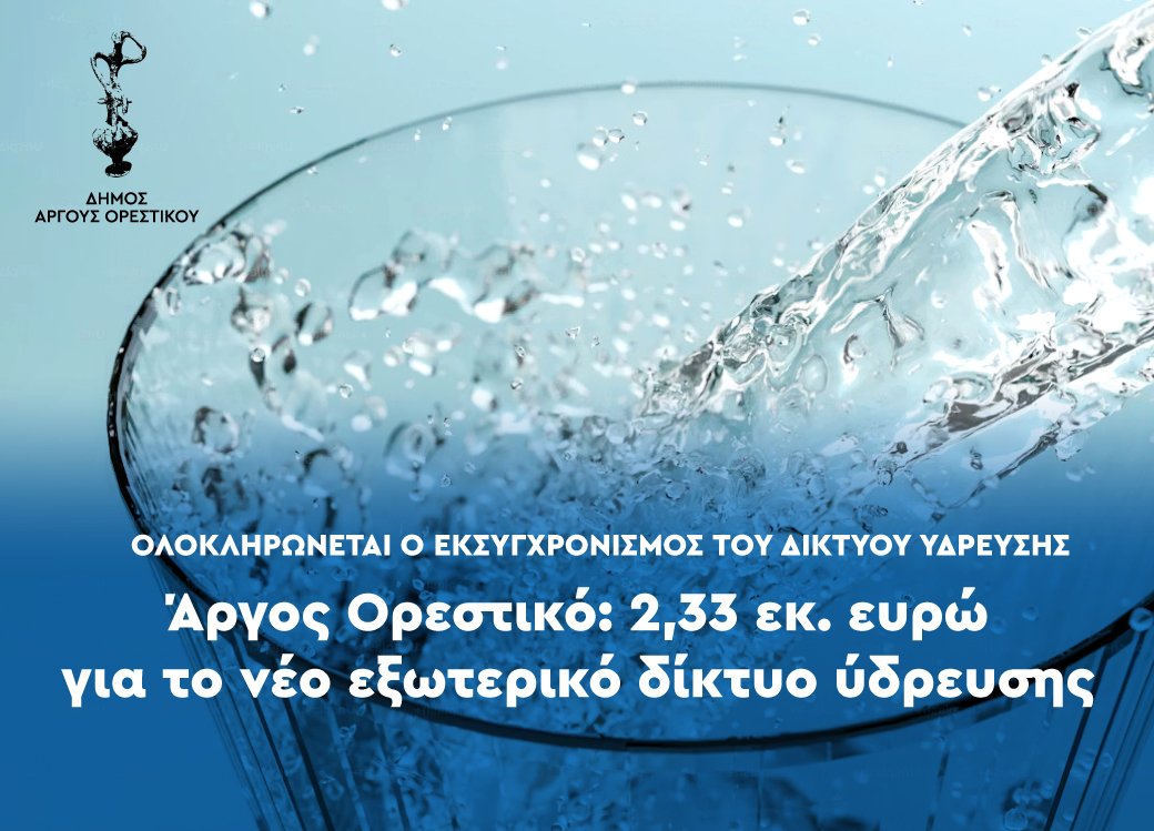 Ολοκληρώνεται ο εκσυγχρονισμός του δικτύου ύδρευσης της πόληςΈνα ακόμη μεγάλο έργο υποδομής ενέταξε ο Δήμος Άργους Ορεστικού στο Ειδικό Πρόγραμμα Δίκαιης Αναπτυξιακής Μετάβασης 2021-2025 – Εθνικό Πρόγραμμα Ανάπτυξης (ΕΠΑ – ΔΑΜ). Πρόκειται για την αντικατάσταση του εξωτερικού δικτύου ύδρευσης της πόλης με συνολικό προϋπολογισμό 2.330.915 ευρώ, μια παρέμβαση κομβικής σημασίας για την ασφάλεια, την επάρκεια και τη βιώσιμη διαχείριση του πόσιμου νερού.