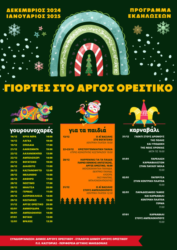 Από τις παραδιοσιακές γουρουνοχαρές και τα happenings για παιδιά, μέχρι το μοναδικό Αργείτικο Καρναβάλι, ο Δήμος Άργους Ορεστικού φέτος γιορτάζει με εκδηλώσεις για μικρούς και μεγάλους!