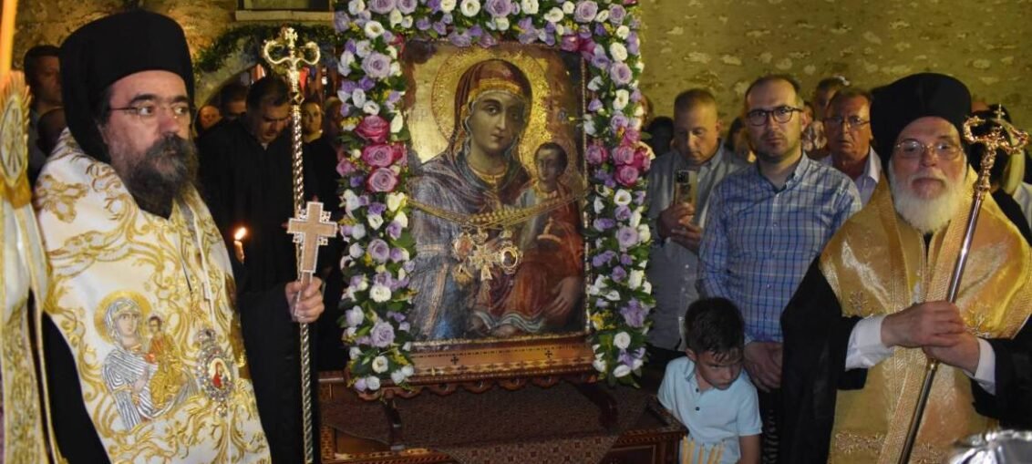 Τὴν παραμονὴ τῆς Μεγάλης Θεομητορικῆς ἑορτῆς, τελέσθηκε ὁ Πανηγυρικός Ἀρχιερατικὸς Ἑσπερινός, μὲ θεῖο κήρυγμα χοροστατούντος του Θεοφιλεστάτου Ἐπισκόπου Ρηγίου κ. Εἰρηναίου τοῦ Οἰκουμενικοῦ μας Πατριαρχείου, και συγχοροστατοῦντος τοῦ Σεβ. Μητροπολίτου Καστορίας κ. Καλλινίκου.