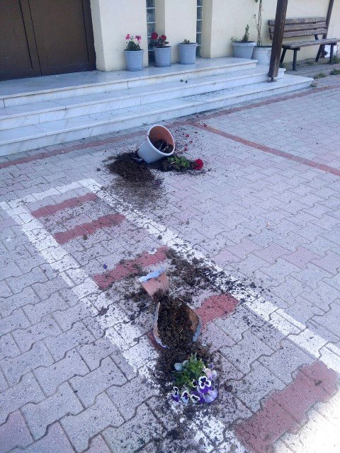 Συγκεκριμένα κατέστρεψαν την εξωτερική θερμομόνωση του σχολείου, το οποίο πρόσφατα αναβαθμίστηκε ενεργειακά, ενώ με… ιδιαίτερο ζήλο κατέστρεψαν και τις γλάστρες που διακοσμούν την είσοδό του.