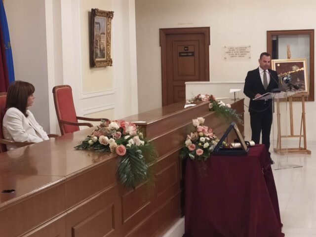 Το ψήφισμα για την ανακήρυξη της Προέδρου διάβασε ο Πρόεδρος του Δημοτικού Συμβουλίου Κίμωνας Μηταλίδης, ενώ αναμνηστικό δώρο της προσέφερε και ο Περιφερειάρχης Γιώργος Κασαπίδης