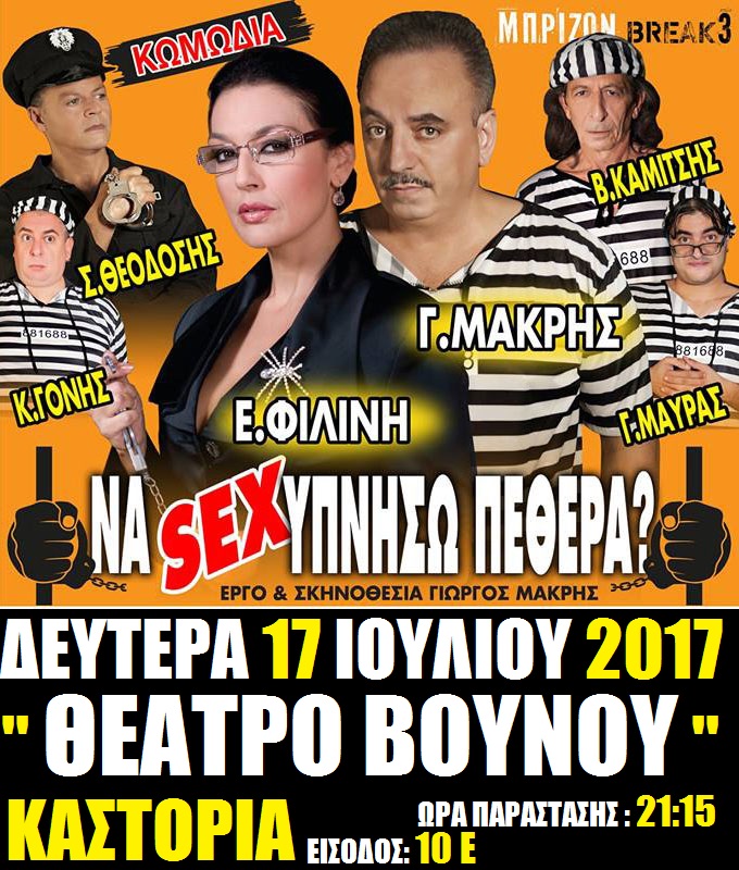 Η παράσταση που κερδίζει κάθε μέρα το κοινό ανά την Ελλάδα, ετοιμάζει τις βαλίτσες της για ΚΑΣΤΟΡΙΑ την Δευτέρα 17 Ιουλίου 2017 και ώρα: 21:15 στο Θέατρο”ΒΟΥΝΟΥ” , για μια παράσταση με απίστευτες ατάκες γέλιου!