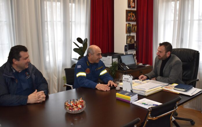 Κατά τη διάρκεια της συνάντησης, ο Δήμαρχος συνεχάρη τον Διοικητή για την προαγωγή του στον βαθμό του Πυράρχου στο πλαίσιο των κρίσεων του Πυροσβεστικού Σώματος και την ανάληψη των νέων καθηκόντων του.