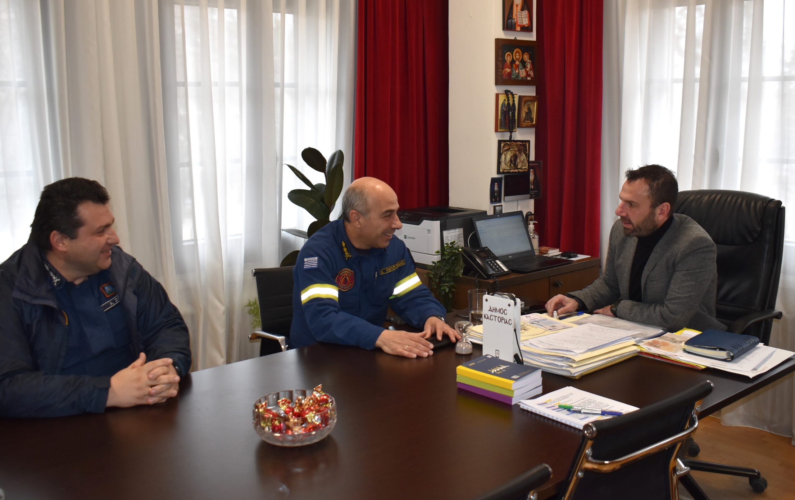Εθιμοτυπική επίσκεψη στον Δήμαρχο Καστοριάς Γιάννη Κορεντσίδη, πραγματοποίησε την Τετάρτη 22 Ιανουαρίου 2025 ο νέος Διοικητής των Πυροσβεστικών Υπηρεσιών Καστοριάς Πύραρχος Δημήτριος Παπουτσίδης.