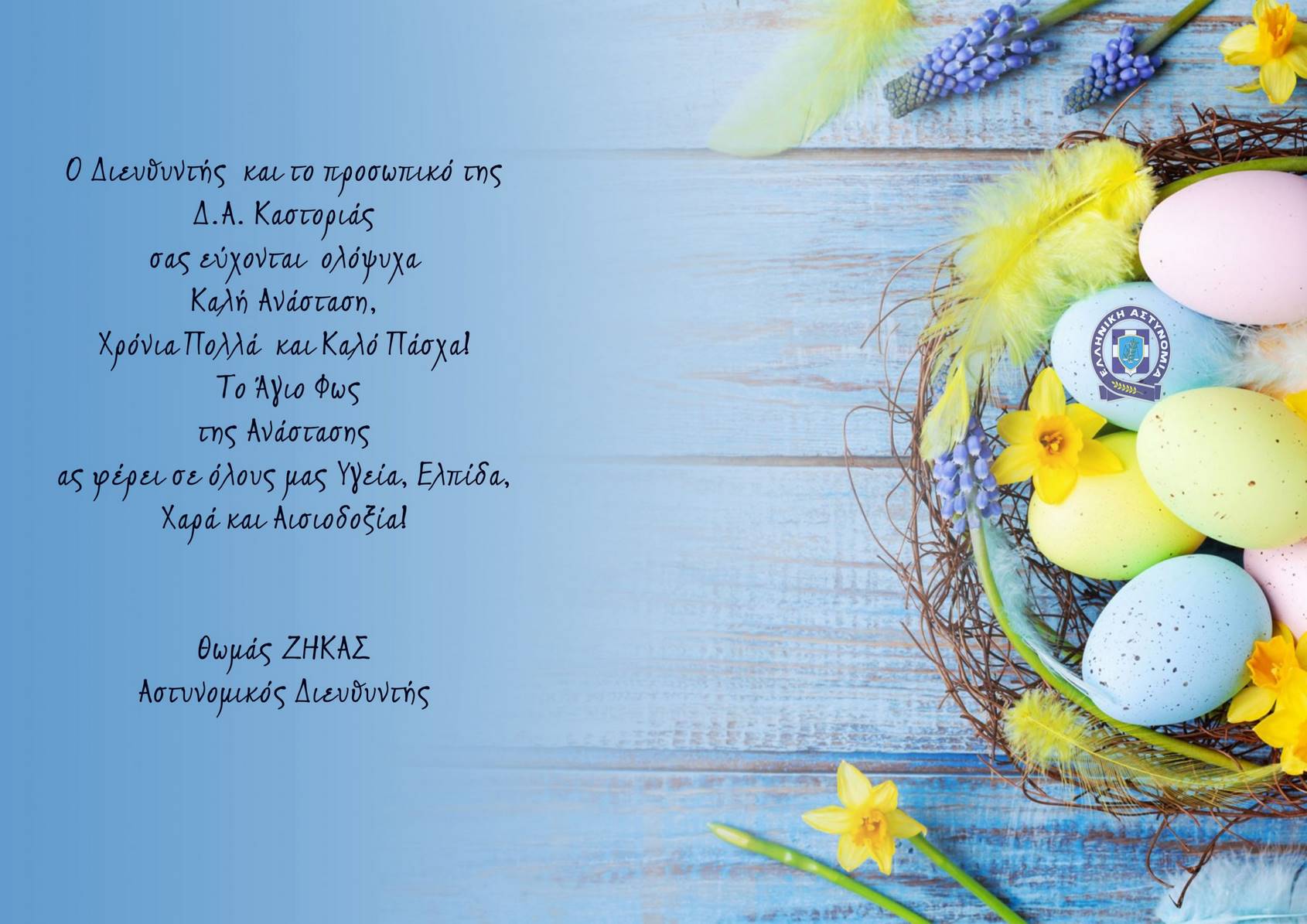 Ευχές του Διευθυντή και του προσωπικού της Διεύθυνσης Αστυνομίας Καστοριάς