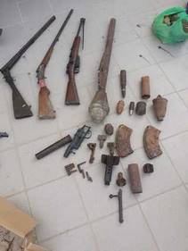 Μεταξύ άλλων βρέθηκαν και κατασχέθηκαν -1- πλήρες αντιαρματικό με -3- κεφαλές, -3- βλήματα πυροβολικού, -6- χειροβομβίδες, -3- πολεμικά τυφέκια, -4- πιστόλια και -1.455- φυσίγγια