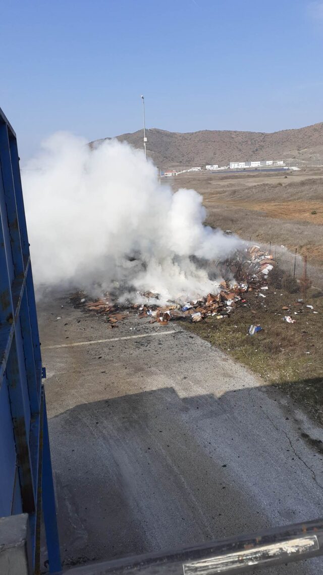 Αφού άδειασε το φορτηγό αμέσως εκδηλώθηκε η φωτιά. Ζημιές και τραυματισμοί δεν έχουν αναφερθεί μέχρι στιγμής