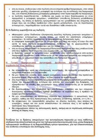 - Να μην πείθονται εύκολα, όσον αφορά ευκαιριακές αγορές προϊόντων που προτείνουν άγνωστα άτομα, ιδιαίτερα δε, δίχως να δουν πρώτα τα προϊόντα αυτά.