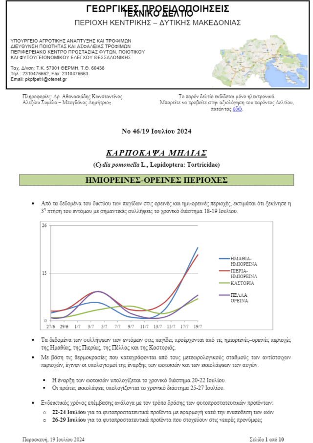 Σας γνωστοποιούμε Δελτίο Γεωργικών Προειδοποιήσεων από το Περιφερειακό Κέντρο Προστασίας Φυτών και Ποιοτικού και Φυτοϋγειονομικού Ελέγχου Θεσσαλονίκης, που αφορά την Καρπόκαψα Μηλιάς.