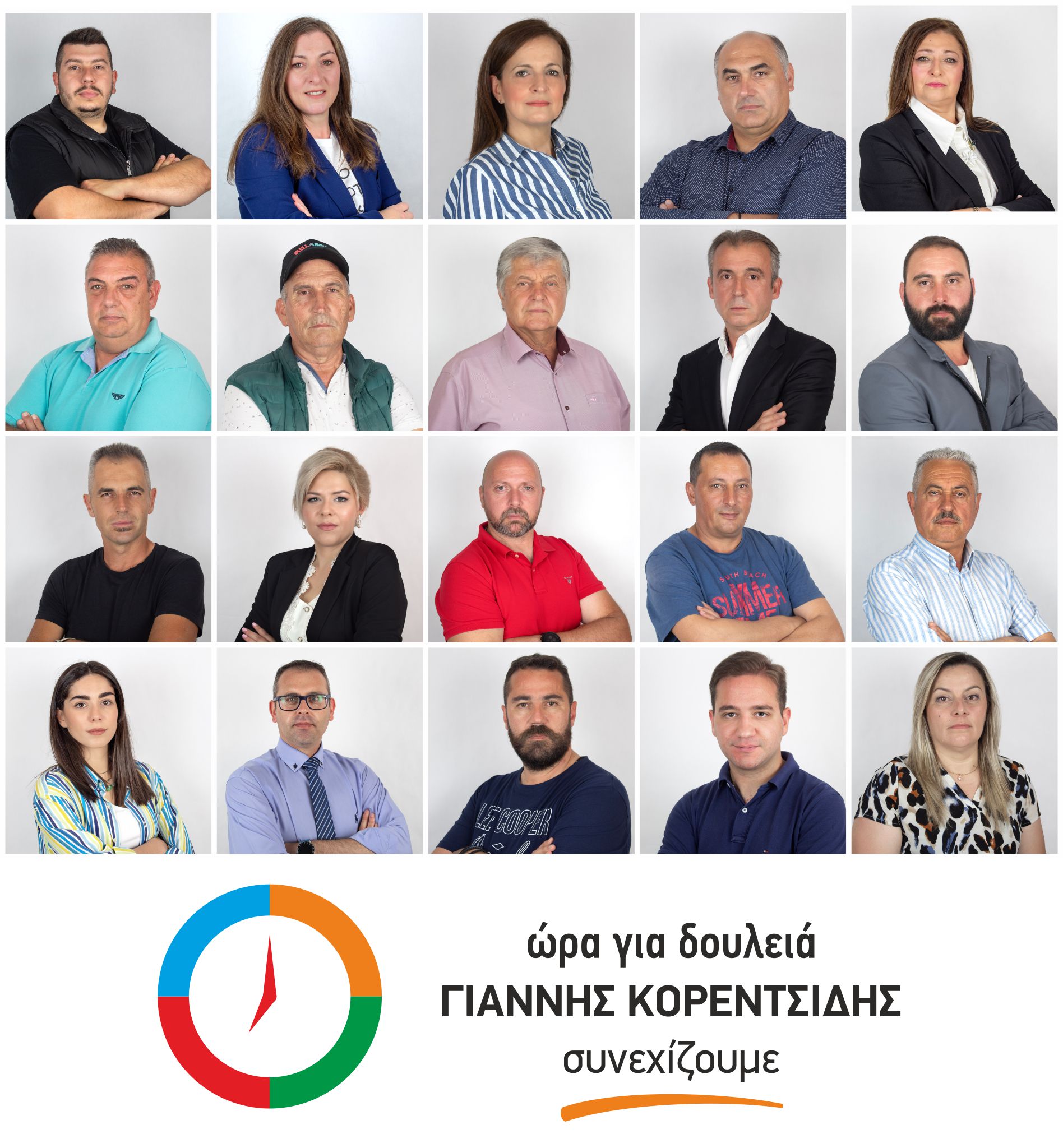 20 ακόμη υποψήφιοι που τάσσονται στο πλευρό του Γιάννη Κορεντσίδη, ανακοινώνονται σήμερα από τον Συνδυασμό «ώρα για δουλειά – συνεχίζουμε»: