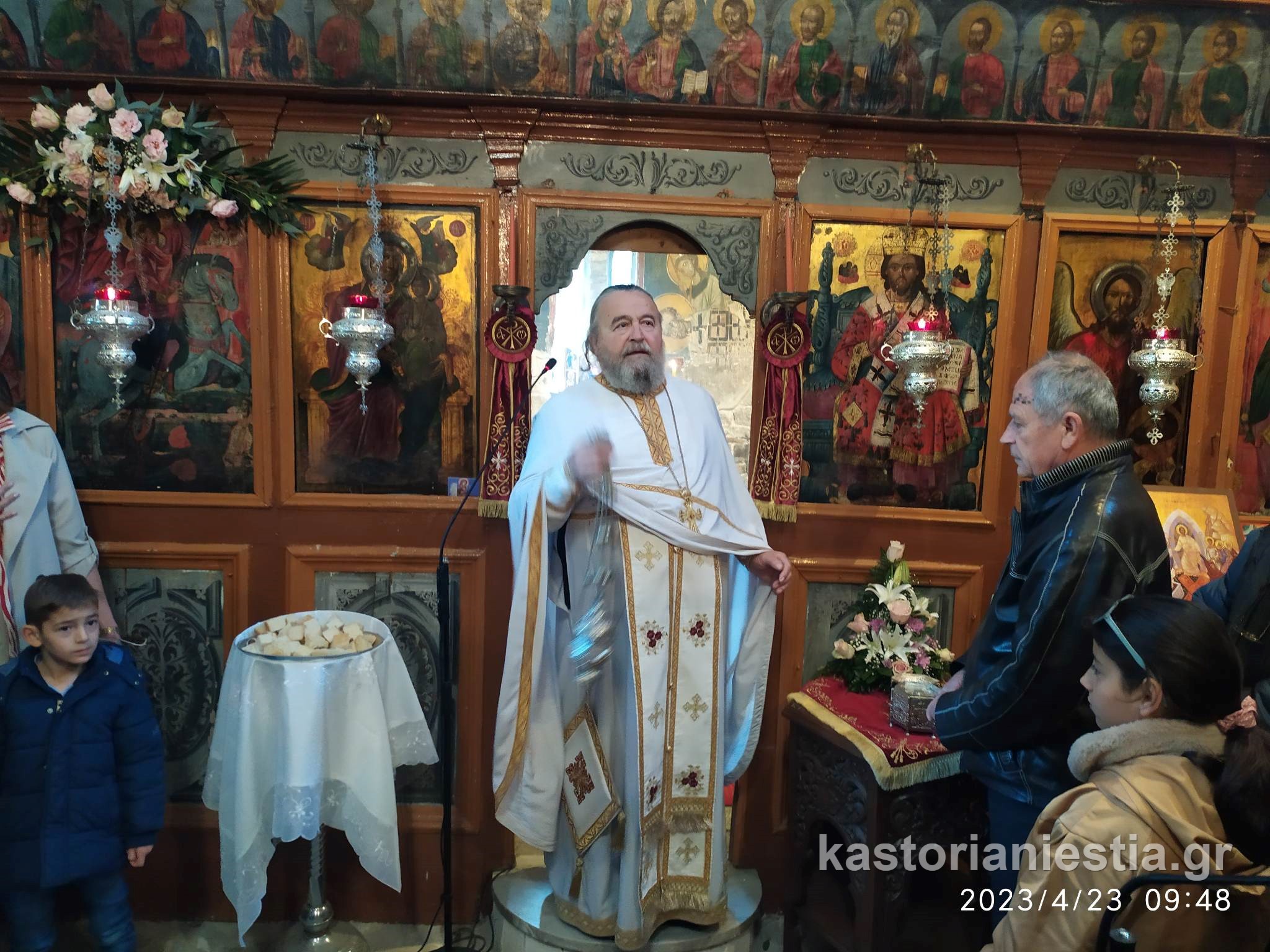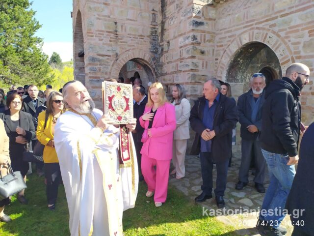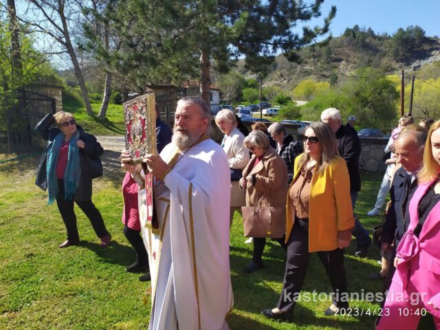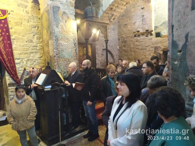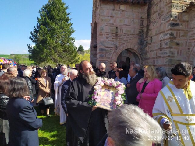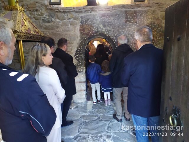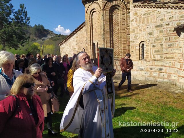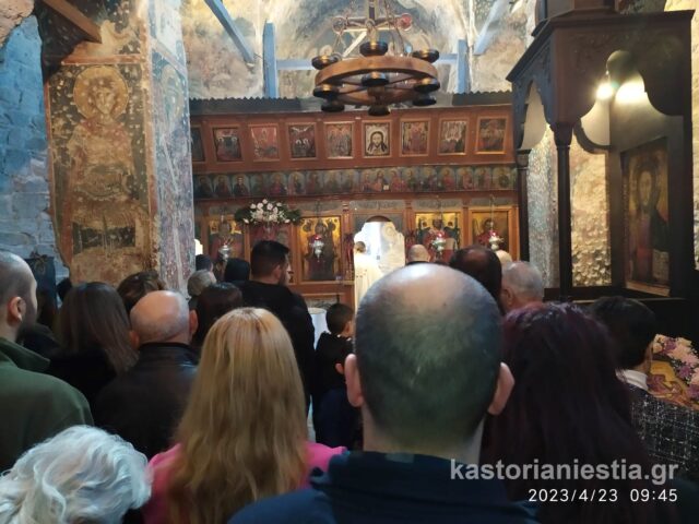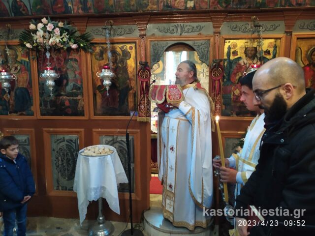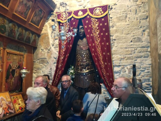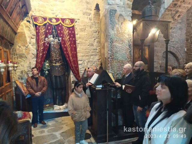 Πλήθος κόσμου συγκεντρώθηκε στον Βυζαντινό Ναό για να παρακολουθήσει την Θεία Λειτουργία και να προσκυνήσει το διάσημο ξυλόγλυπτο ομοίωμα του Αγίου Γεωργίου.