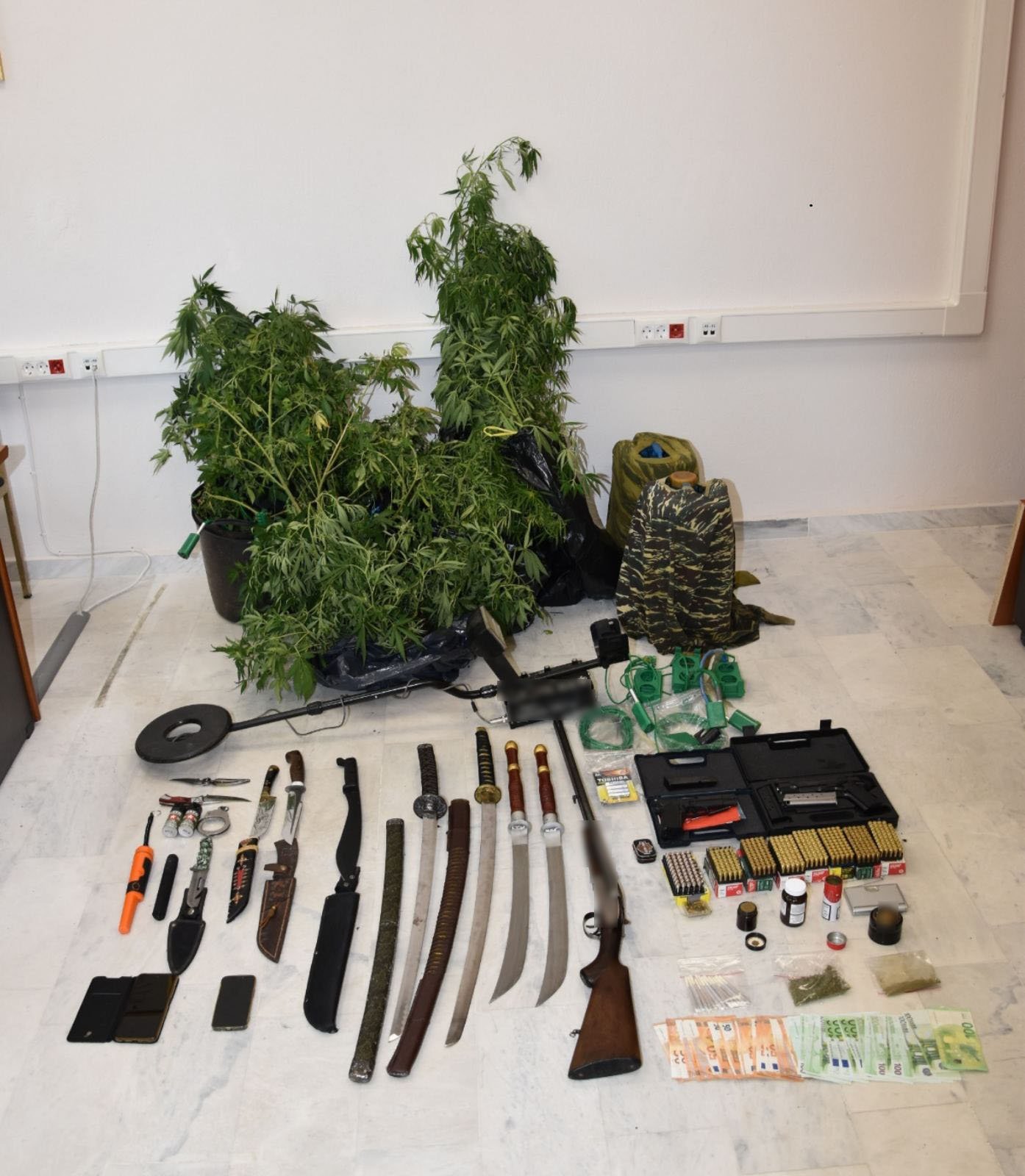 Σε έρευνα που πραγματοποιήθηκε την 06-09-2025 τις πρωινές ώρες, στην οικία του 37χρονου, σε περιοχή των Γρεβενών, από τους προαναφερόμενους αστυνομικούς σε συνεργασία με αστυνομικούς του Αστυνομικού Τμήματος Δεσκάτης Γρεβενών, βρέθηκαν συνολικά και κατασχέθηκαν: