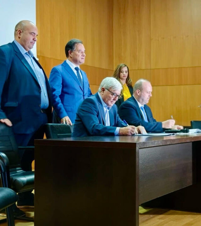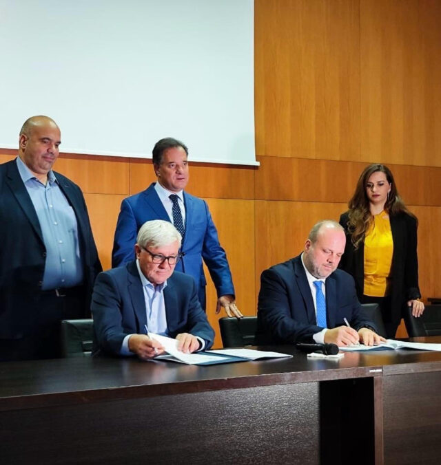 Ο Υπουργός Εργασίας και Κοινωνικής Ασφάλισης κ. Άδωνις Γεωργιάδης παρέστη σήμερα, Τετάρτη 6 Δεκεμβρίου 2023, στην υπογραφή σύμβασης για την ολοκλήρωση της κατασκευής του οικισμού 80 εργατικών κατοικιών στην Κυρακαλή Γρεβενών μεταξύ του Διοικητή της ΔΥΠΑ κ. Σπύρου Πρωτοψάλτη και εκπροσώπου της αναδόχου εργολαβικής εταιρίας.