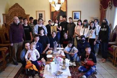 Ἐπίσης, τήν ἴδια ἡμέρα ὁ Σεβασμιώτατος δέχθηκε καί ξενάγησε στό Ἐπισκοπεῖο τό Γυμνάσιο Λεχόβου πού τόν ἐπισκέφθηκε.