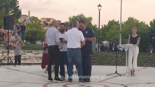 Παράλληλα με τον Δήμο Καστοριάς τους αθλητές τιμήσε και ευλόγησε ο Σεβασμιώτατος Μητροπολίτης Καστοριάς κ. Καλλίνικος, ενώ τις τιμητικές διακρίσεις απένειμαν ο Δήμαρχος Καστοριάς Γιάννης Κορεντσίδης, ο Πρόεδρος του Πασόκ Νίκος Ανδρουλάκης που περιοδεύει αυτόν τον καιρό στην περιοχή μας, η βουλευτής Καστοριάς Μαρία Αντωνίου, ο Αντιπεριφεριεάρχης Δημήτρης Σαββόπουλος και ο αντιδήμαρχος Αθλητισμού Στάθης Βασιλειάδης.