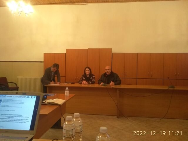 Την παρουσίαση της Πρόσκλησης Υποβολής Πρότασης από την ΑΝ.ΚΑΣ.Α.Ε. ΟΤΑ έκαναν ο διευθυντής της ΑΝ.ΚΑΣ.Α.Ε. ΟΤΑ κος. Τσαπάρας Βασίλειος μαζί με τα στελέχη της Ομάδας Τοπικής Δράσης.