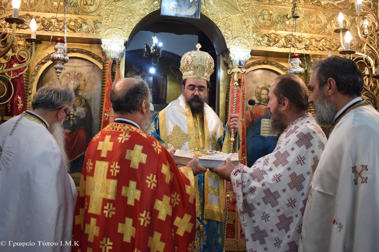 Μαζί με τον Σεβασμιώτατο Μητροπολίτη λειτούργησαν οι π. Βασίλειος Σωτηρίου, π. Πασχάλης Σωτηρόπουλος, π. Γεώργιος Τσιτσής, π. Διονύσιος Παπαιωανίδης καθώς και οι διάκονοι της Μητροπόλεως.