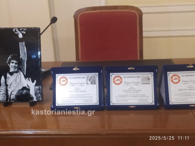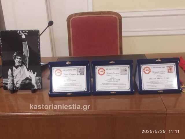 Σε μια συγκινησιακά φορτισμένη ατμόσφαιρα, πραγματοποιήθηκε σήμερα στην αίθουσα του Δημοτικού Συμβουλίου Καστοριάς μια ξεχωριστή εκδήλωση μνήμης και τιμής. Στο επίκεντρο βρέθηκαν τρεις εμβληματικές μορφές του καστοριανού ποδοσφαίρου που δεν βρίσκονται πλέον στη ζωή: ο Ανέστης Αφεντουλίδης, ο Αργυράκης Παύλου και ο Νίκος Σαργκάνης, στους οποίους απονεμήθηκαν τιμητικές πλακέτες.