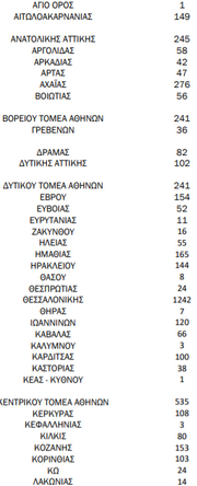Η γεωγραφική κατανομή των κρουσμάτων έχει ως εξής: