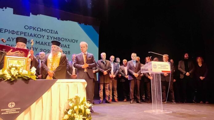 Πραγματοποιήθηκε σήμερα το μεσημέρι η ορκωμοσία η ορκωμοσία της νέας Περιφερειακής Αρχής Δυτικής Μακεδονίας και του Περιφερειάρχη Γιώργου Αμανατίδη στην Αίθουσα Τέχνης της Κοζάνης. Στην τελετή ορκωμοσίας παραβρέθηκε ο Περιφερειάρχης Κεντρικής Μακεδονίας, Απόστολος Τζιτζικώστας.