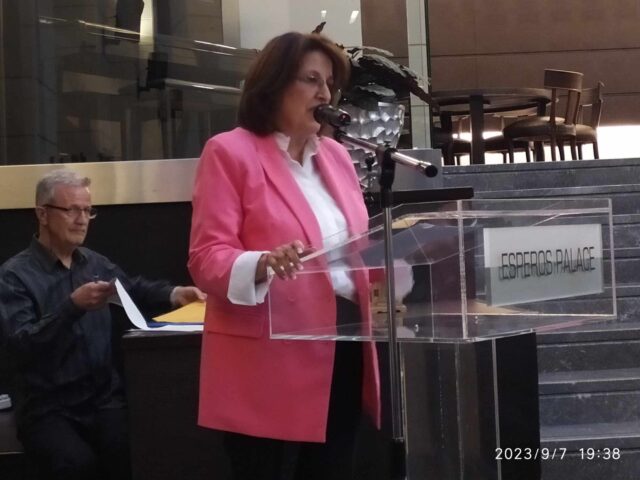 Στο τέλος της ομιλίας της παρουσίασε τους υποψήφιους περιφερειακούς συμβούλους του συνδυασμού ΕΛΠΙΔΑ στην Π.Ε. Καστοριάς.