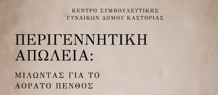 Το Κέντρο Συμβουλευτικής Γυναικών του Δήμου Καστοριάς με αφορμή την 15η Οκτωβρίου, Παγκόσμια Ημέρα Ευαισθητοποίησης για την νεογνική απώλεια και την απώλεια κύησης, σας προσκαλεί το Σάββατο 14 Οκτωβρίου, 17.30 μμ, στο Κέντρο Περιβαλλοντικής Εκπαίδευσης Καστοριάς, στην ενημερωτική ημερίδα με τίτλο «Περιγεννητική απώλεια. Μιλώντας για το αόρατο πένθος».