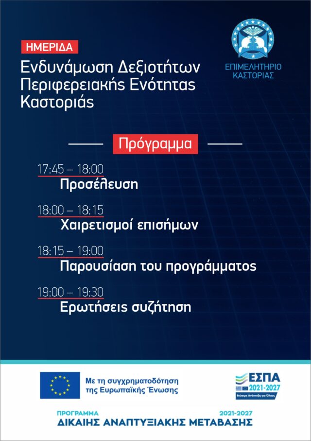 Ημερίδα με θέμα: “Ενδυνάμωση Δεξιωτήτων Περιφερειακής Ενότητας Καστοριάς”