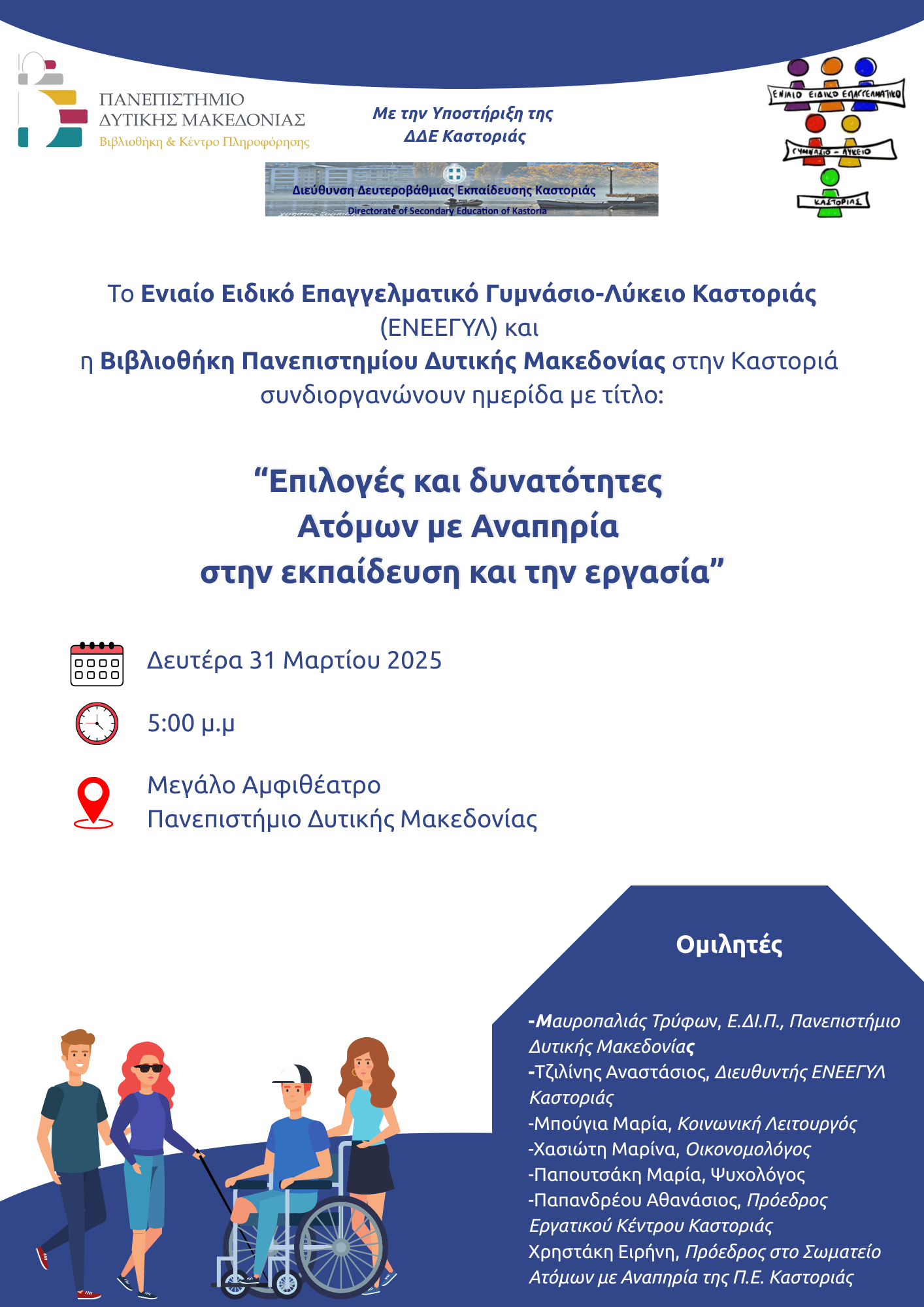 με θέμα: “Επιλογές και δυνατότητες ΑμεΑ στην Εκπαίδευση και την εργασία”.