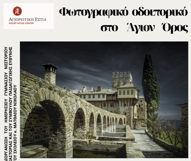 Με ιδιαίτερη χαρά σας προσκαλούμε στα εγκαίνια της Έκθεσης με τίτλο «Φωτογραφικό οδοιπορικό στο Άγιο Όρος με το φακό του Tomasz Moscicki», που φιλοξενείται στη Γκαλερί του Ημερησίου Γυμνασίου Νεστορίου.