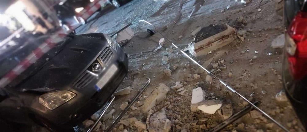 Ένα μπαλκόνι β’ ορόφου πολυκατοικίας στο Ηράκλειο της Κρήτης, έπεσε στον δρόμο με συνέπεια να προκαλέσει -ευτυχώς- μόνο ζημιές σε παρκαρισμένα αυτοκίνητα.