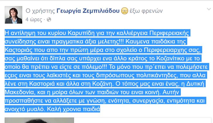 Περιφερειάρχη Θεόδωρο Καρυπίδη, για τις αντιλήψεις του προς το “Κοζανίτικο