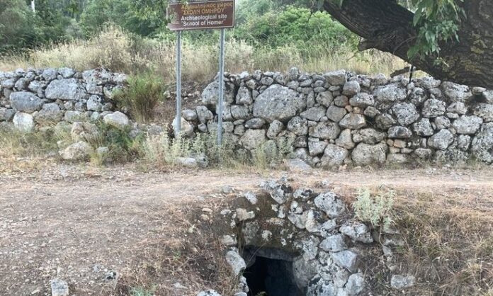 Η θέση, γνωστή ως Σχολή Ομήρου από τις αρχές του 19ου αιώνα, έχει ως πυρήνα μεγάλο βραχώδη σχηματισμό, στις ανατολικές υπώρειες της Εξωγής, σε περιοχή με πηγές νερού. Οι ανεσκαμμένες αρχαιότητες βρίσκονται σε δύο άνδηρα, τα οποία συνδέονται με δύο λαξευτά κλιμακοστάσια, και σε αρκετά σημεία χαμηλότερα. Στο Άνω Άνδηρο δεσπόζει το υπόλειμμα Ελληνιστικού πύργου (του 3ου αι. π.Χ.), ενώ το μεγαλύτερο μέρος του Κάτω Ανδήρου καταλαμβάνει μεγάλο ορθογώνιο κτήριο.