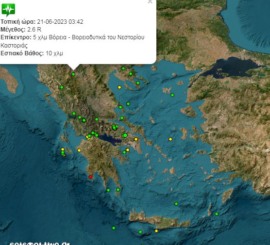 Νέα σεισμική δόνηση μεγέθους 2,6 ρίχτερ καταγράφηκε στις 03:42 στην Καστοριά