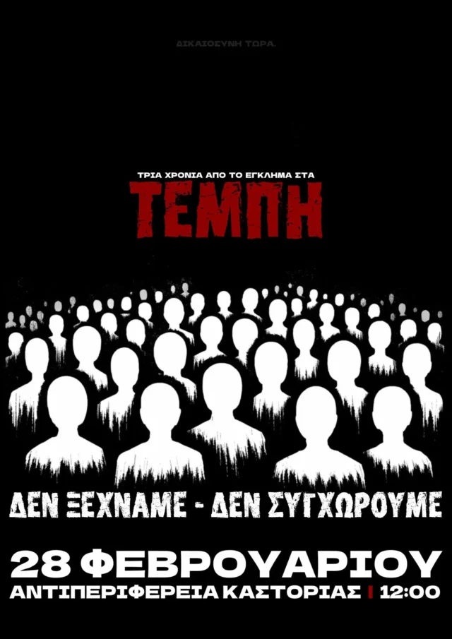 Στις 28 Φλεβάρη συμπληρώνονται τρία χρόνια από το προδιαγεγραμμένο έγκλημα στα Τέμπη, που στοίχισε τη ζωή σε 57 συνανθρώπους μας και συγκλόνισε ολόκληρο τον λαό. Λίγες μέρες μετά, στις 23 Μάρτη, ξεκινά η κύρια δίκη.