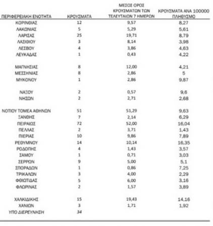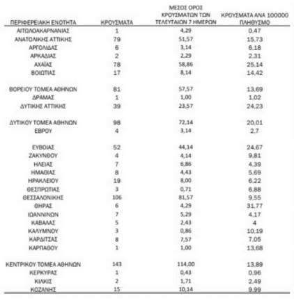 Η γεωγραφική κατανομή των κρουσμάτων έχει ως εξής: