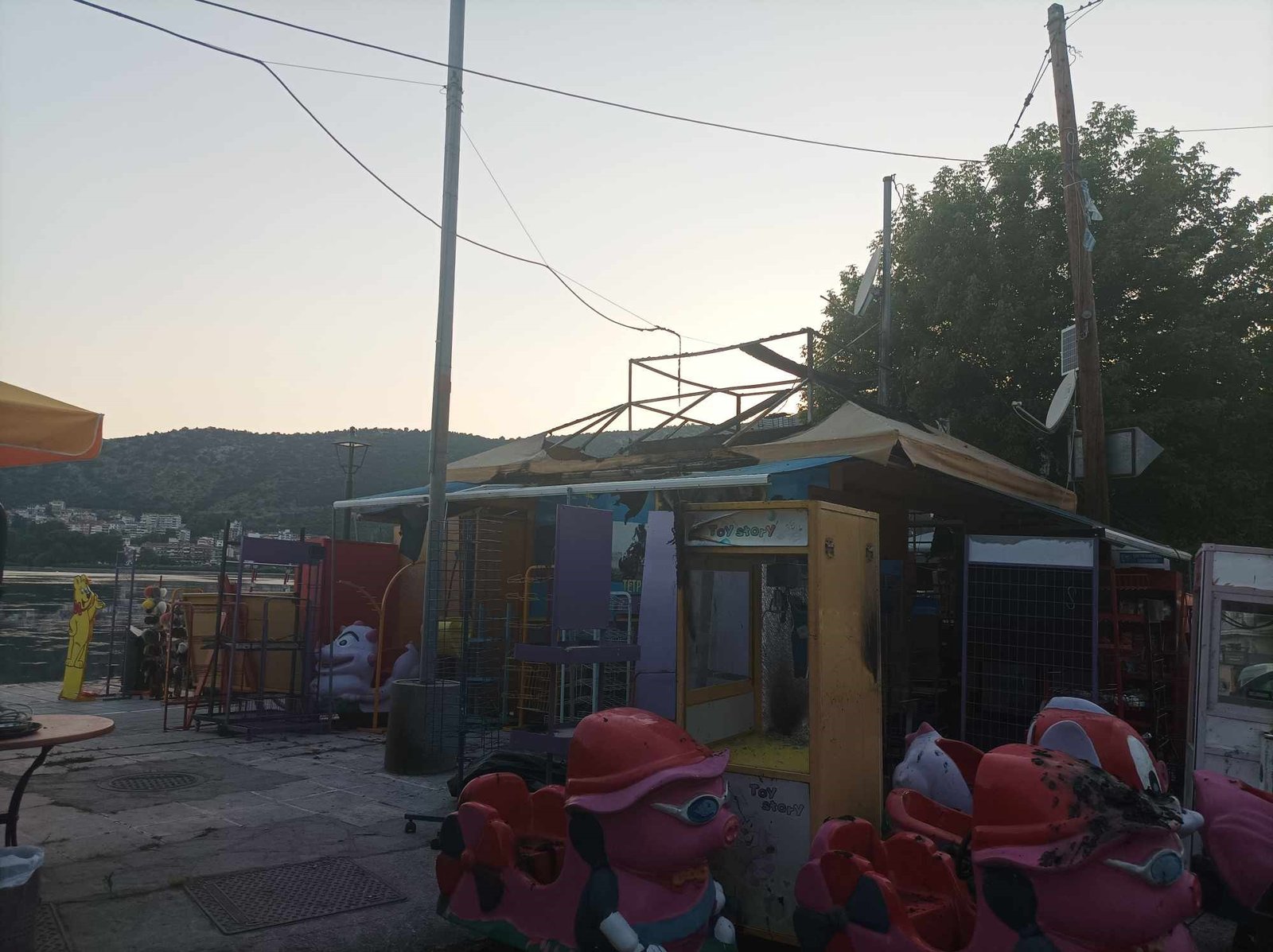 Από την φωτιά κάηκε ολσχερώς η σκεπή του περιπτέρου ενώ προκλήθηκαν πολλές υλικές ζημιές
