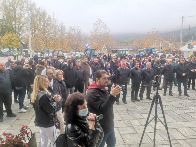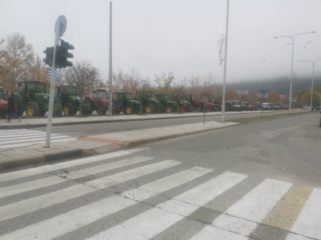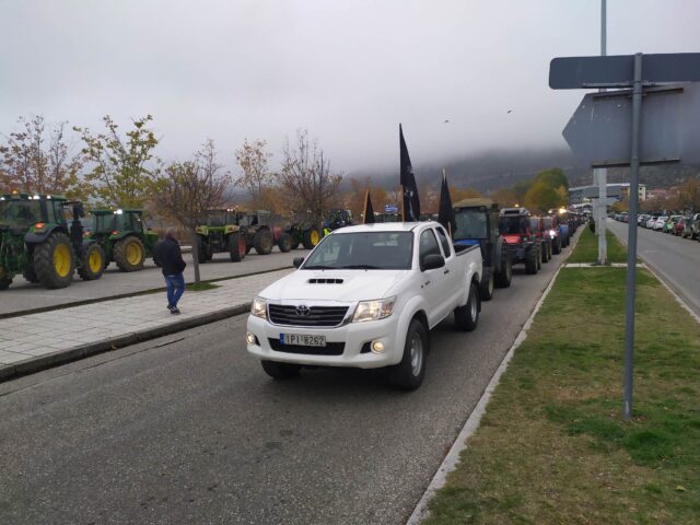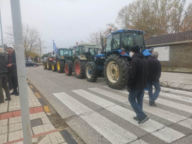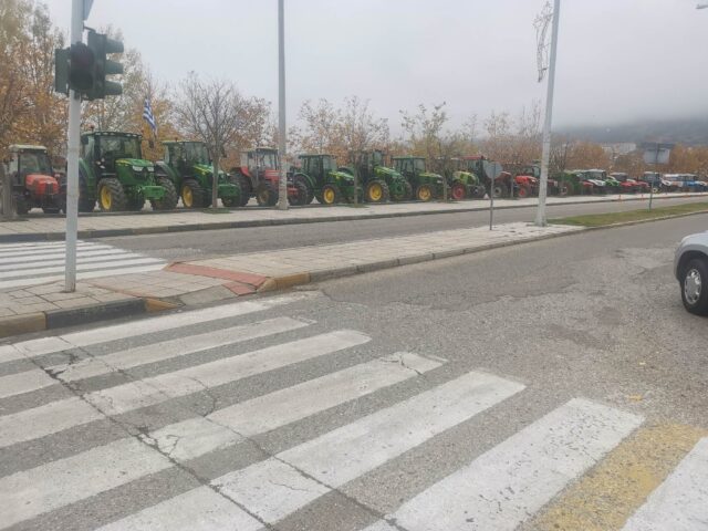Η συγκέντρωση έκλεισε με πορεία των τρακτέρ στους κεντρικούς δρόμους της πόλης