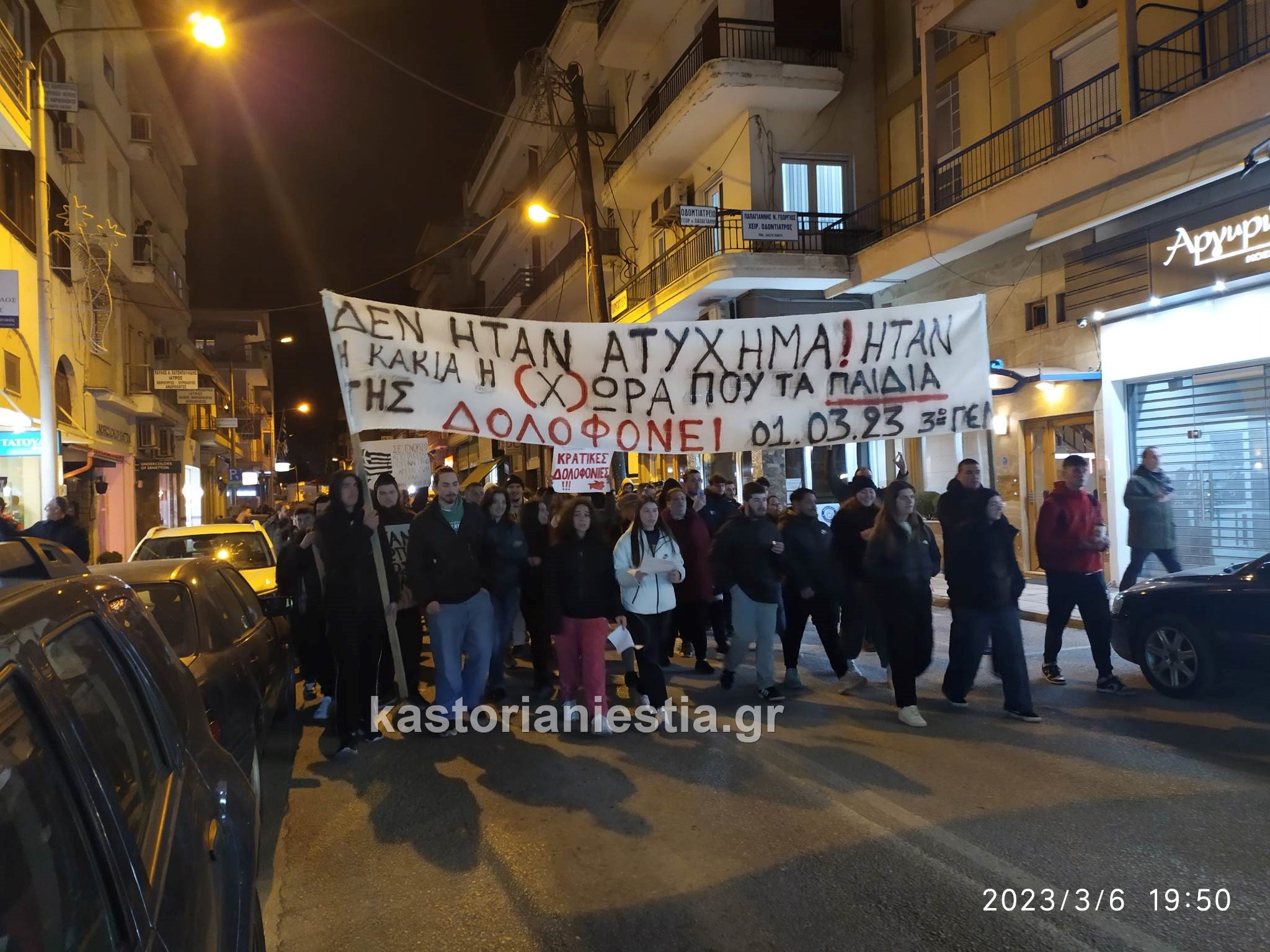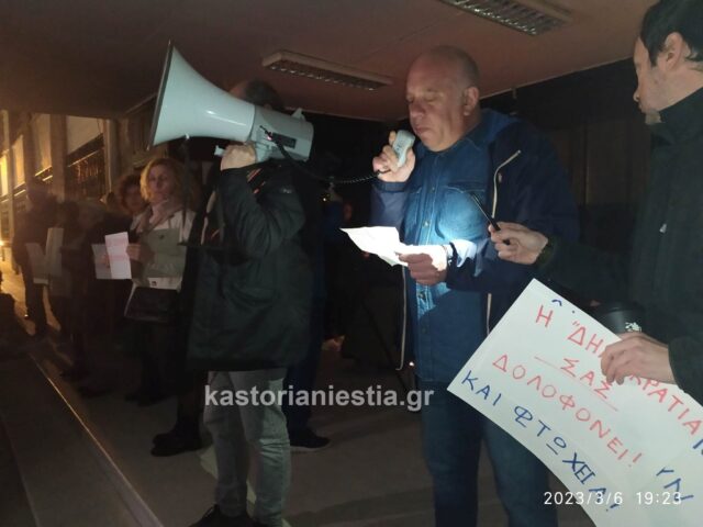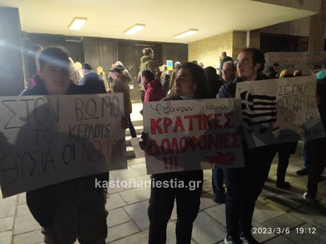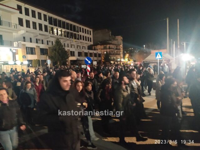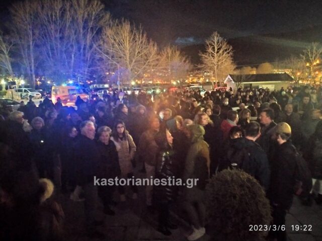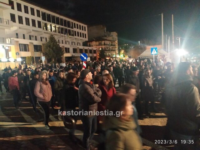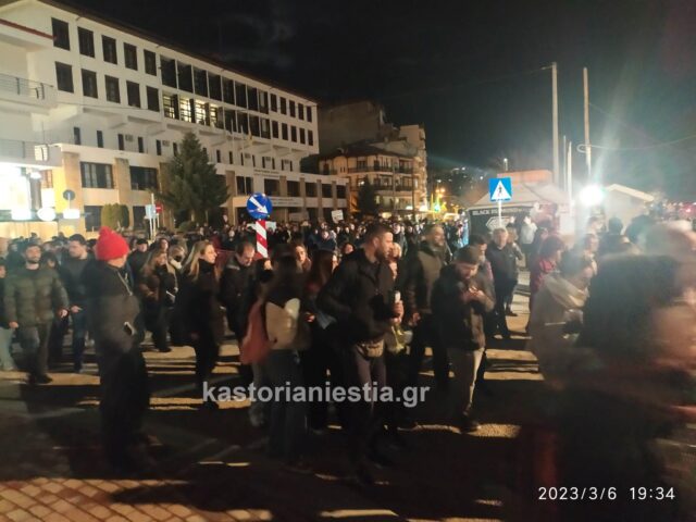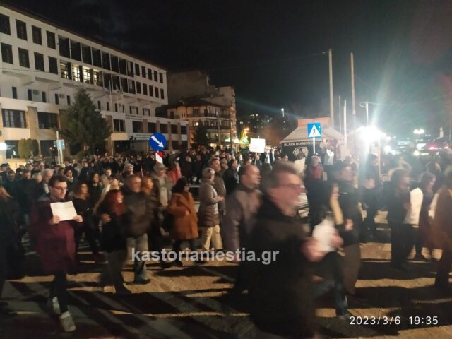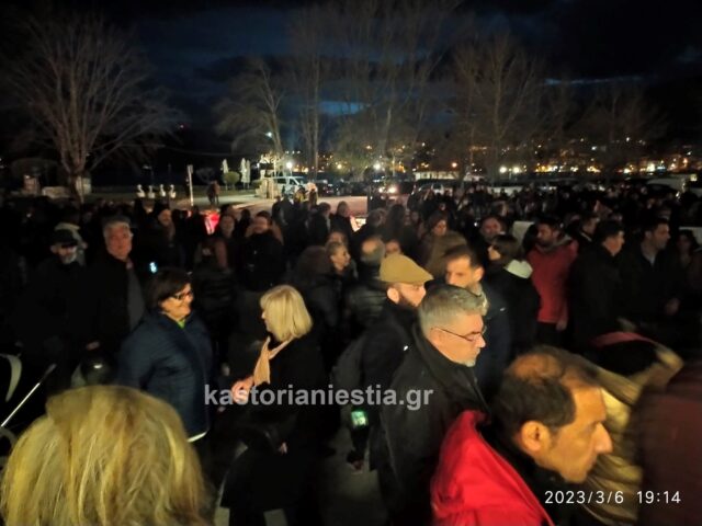 Εκατοντάδες πολίτες της Καστοριάς συγκεντρώθηκαν σήμερα το βράδυ μπροστά από το κτήριο της Αντιπεριφέρειας για να εκφράσουν την οργή και την αγανάκτησή τους για τον άδικο χαμό των 60 θυμάτων του σιδηροδρομικού δυστυχήματος στην κοιλάδα των Τεμπών που συγκλόνισε ολόκληρη την Ελλάδα.