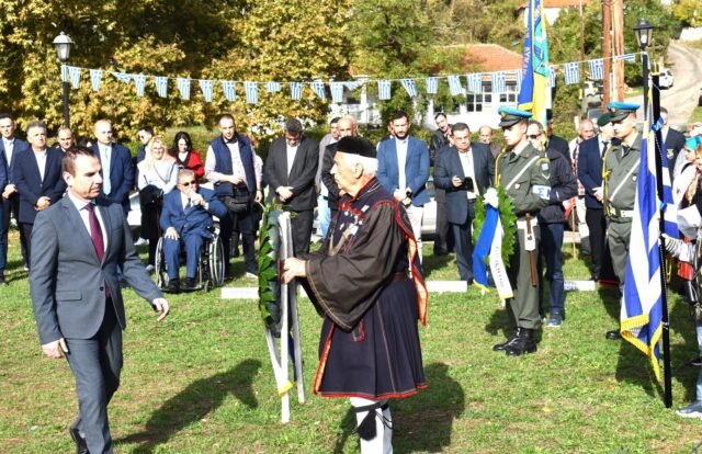 Αμέσως μετά την επιμνημόσυνη δέηση ακολούθησε κατάθεση στεφάνων από τους φορείς του τόπου, από εκπροσώπους των στρατιωτικών και αστυνομικών αρχών και μακεδονικών οργανώσεων.