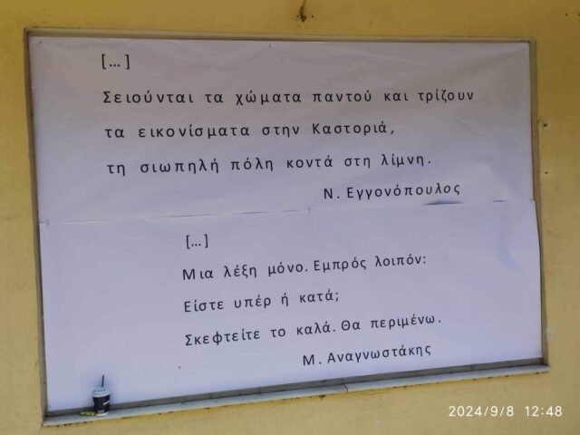 Μια εκδήλωση διαμαρτυρίας με μεγάλη σουμμετοχή συμπολιτών μας, που στόχο είχε να αφυπνίσει τους αρμόδιους φορείς και να στρέψει το ενδιαφέρον τους προς ένα εμβληματικό κτήριο το οποίο κάποτε στέγαζε τα μικρά ψαρομάγαζα και ένα στέκι – τσιπουράδικο – που τώρα έχει εγκαταληφθεί στην τύχη του – πραγματοποιήθηκε σήμερα το μεσημέρι στην όμορφη αυτή γωνιά της Καστοριάς, με την συμμετοχή 20 και πλέον συλλόγων της πόλης.