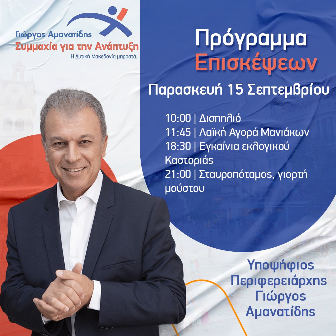 ΚαστοριάΕλλάδαΠολιτική Καστοριά: Το αυριανό πρόγραμμα του υποψηφίου Περιφερειάρχη Δυτικής Μακεδονίας Γιώργου Αμανατίδη 14 Σεπτεμβρίου 2023 FacebookTwitterPinterestWhatsApp Το αυριανό πρόγραμμα του υποψηφίου Περιφερειάρχη Δυτικής Μακεδονίας Γιώργου Αμανατίδη Κοινοποιήστε: Mοιραστείτε στο Facebook(Ανοίγει σε νέο παράθυρο) Facebook Share on X(Ανοίγει σε νέο παράθυρο) X