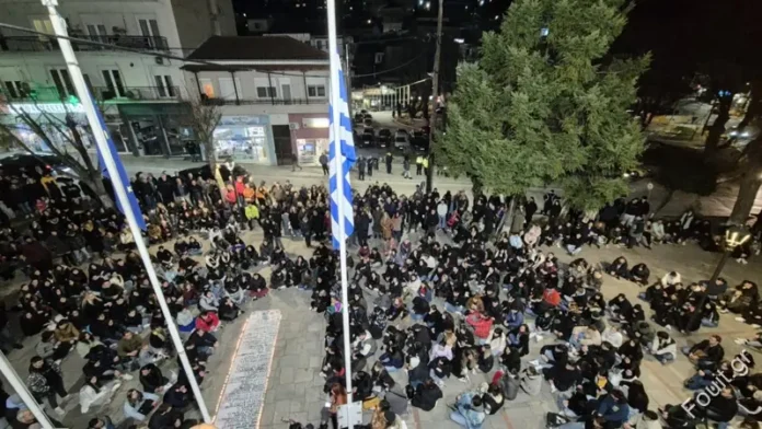 Καθιστική διαμαρτυρία 57′ για τα Τέμπη, πραγματοποιήθηκε στη Καστοριά, μπροστά από το δημαρχιακό μέγαρο