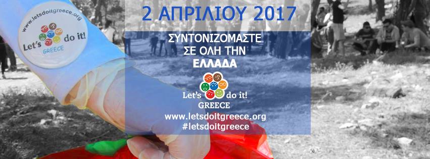 Γίνε και εσύ μέλος της μεγάλης εθελοντικής οικογένειας, μοιράσου το κοινό όραμα, δείξε την αγάπη και το σεβασμό σου για το περιβάλλον. Στις 2 Απριλίου 2017 έλα να φωνάξουμε όλοι μαζί Let’s do it Greece
