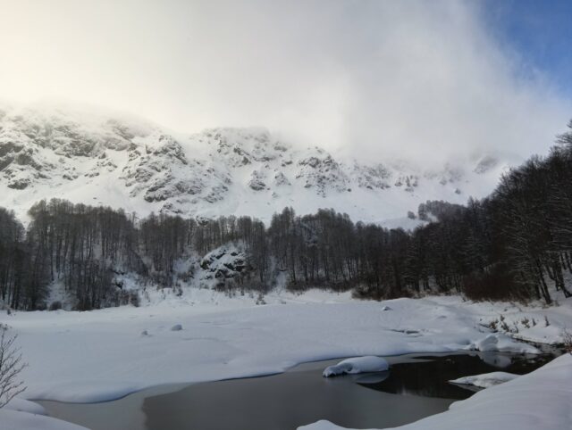 Λίμνη Μουτσάλια 1736 υψ. περιοχή Αρρένες με πολύ καλό χιονάκι και η λίμνη όπως πάντα τέτοια εποχή παγωμένη.