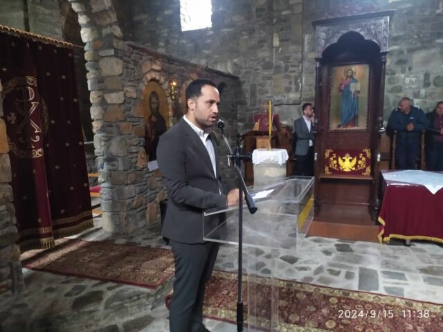 Η Εκδήλωση ξεκίνησε νωρίς το πρωί με θεία λειτουργία στον ανακαινισμένο Ι. Ναό της Παναγίας κατά την οποία χοροστάτησε ο Σεβ. Μητροπολίτης κ. Καλλίνικος.