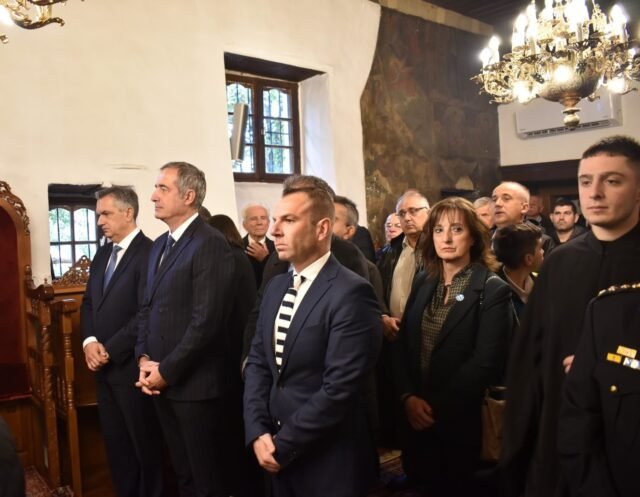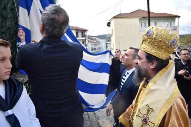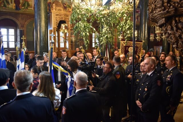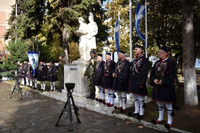 Στη συνέχεια, τελέστηκε Επιμνημόσυνη Δέηση στη Ηρώο των Πεσόντων στην Πλατεία Μακεδονομάχων και κατάθεση στεφάνων.