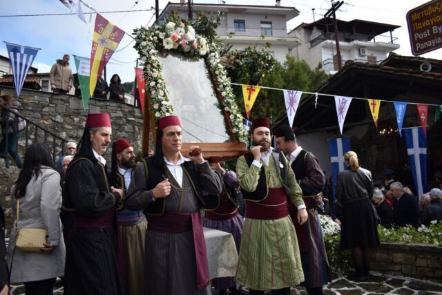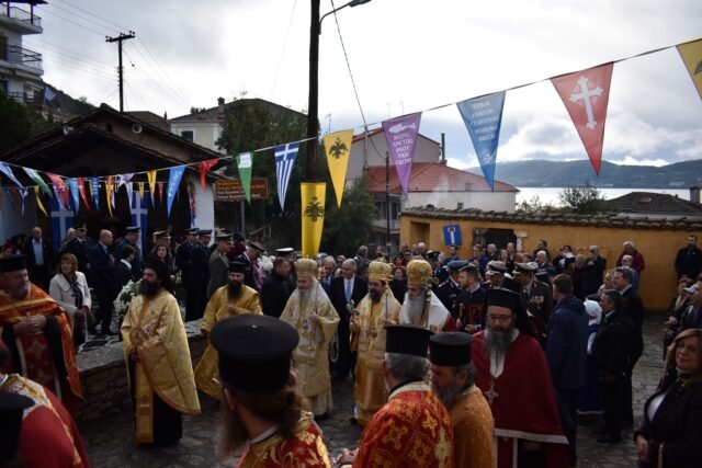 Οι εορταστικές εκδηλώσεις ξεκίνησαν το πρωί με Όρθρο και Πανηγυρική Αρχιερατική Θεία Λειτουργία στον Ιερό Ναό Αγίου Μηνά, προεξάρχοντος του Σεβασμιωτάτου Μητροπολίτη Ναυπάκτου και Αγίου Βλασίου κ.κ. Ιερόθεου και συλλειτουργούντων των Σεβασμιωτάτων Μητροπολιτών Πειραιώς κ.κ. Σεραφείμ και Καστορίας κ.κ. Καλλίνικου.